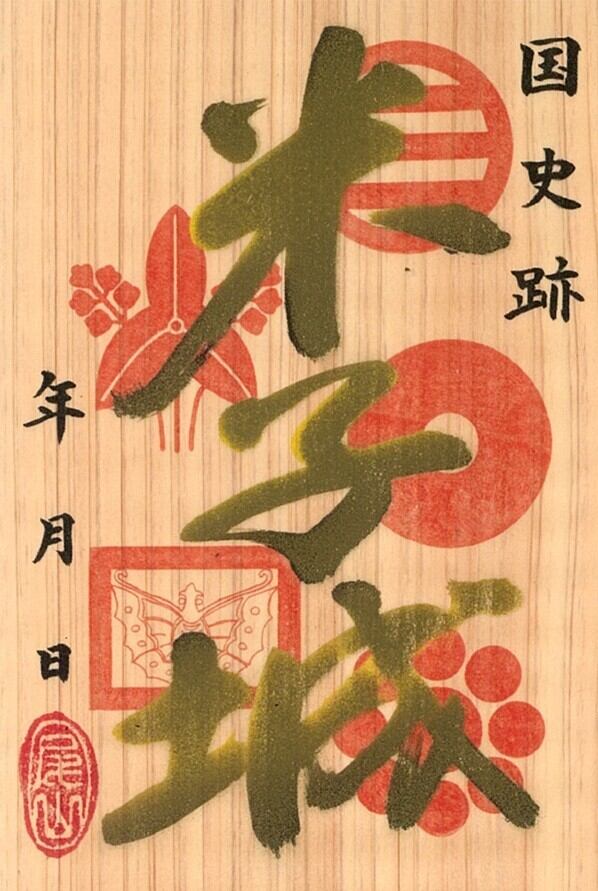 米子城の美しい景観と歴史的意義が、森田眉山の巧みな金文字の筆致によって表現されています。
